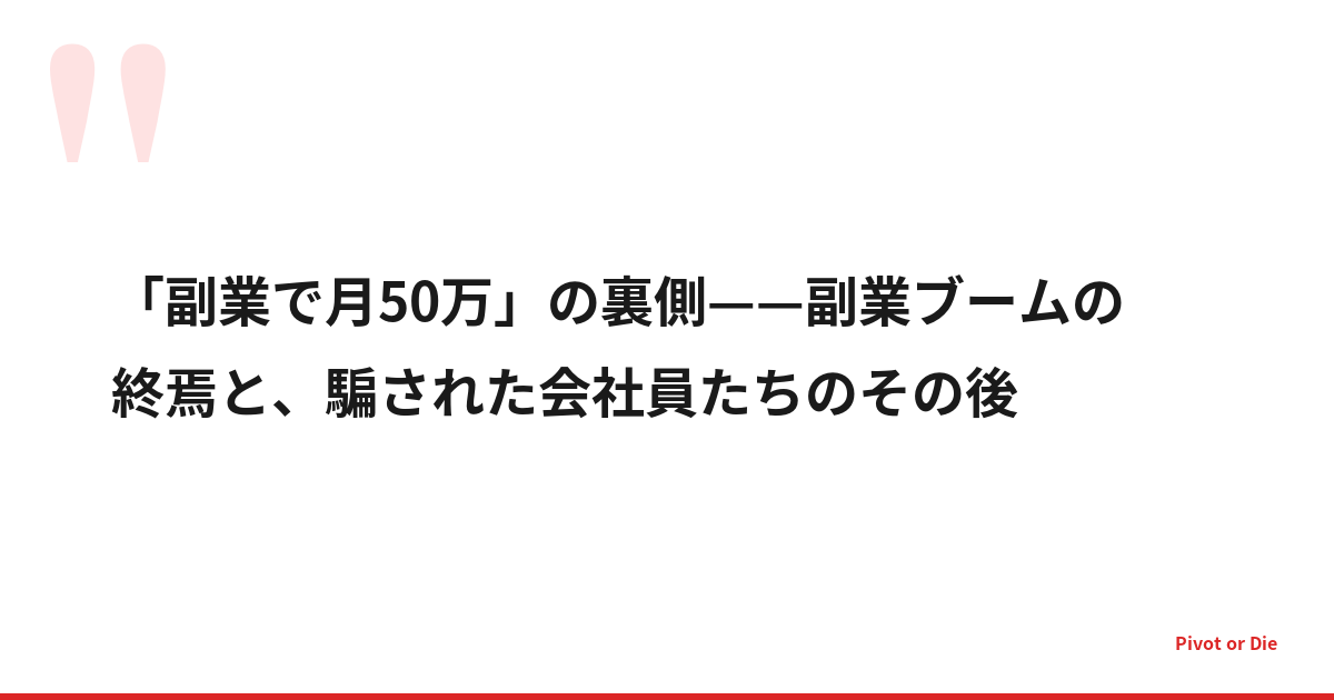 「副業で月50万」の裏側——副業ブームの終焉と、騙された会社員たちのその後
